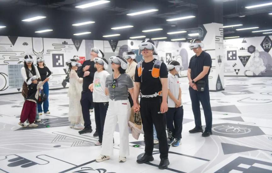 4月5日,游客在河南洛阳市神都十三坊“梦神都·唐潮秘境”XR幻境剧场内体验游玩。新华社发(股票期货配资公司张怡熙 摄)